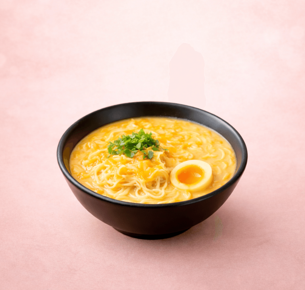 Насыщенный бульон, пшеничная лапша, сочное мясо, яйцо и ароматные топпинги. Глубокий, тёплый сырный вкус с японским характером.