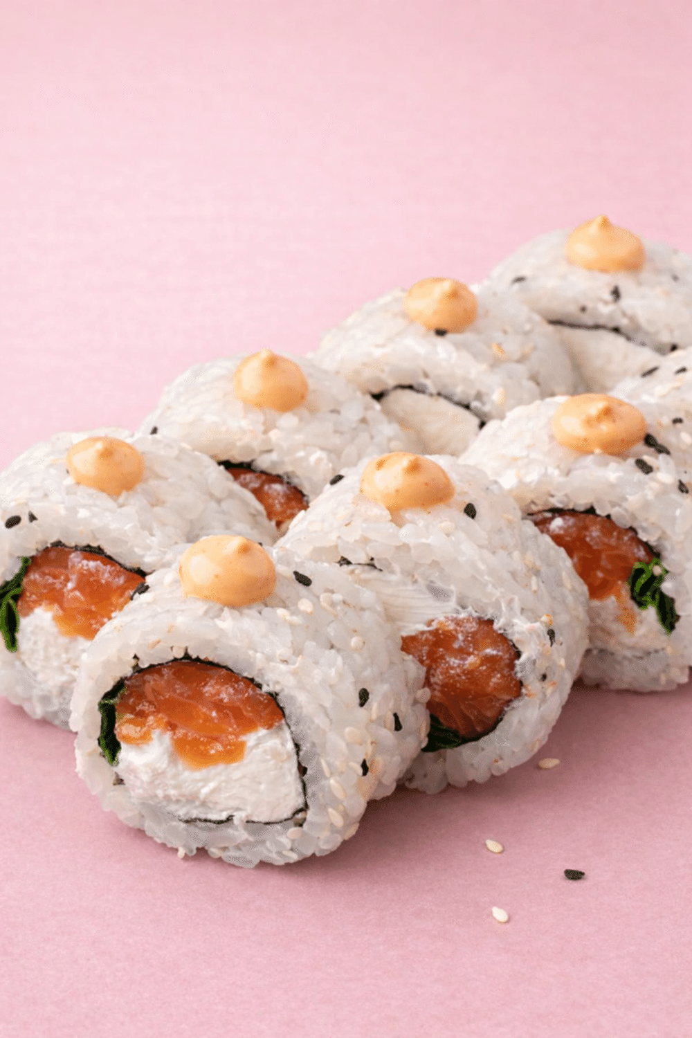 Сочный лосось в сочетании со сливочным сыром и нотками спайси — вкус идеального ролла! В составе: Лосось, творожный сыр, лучок, лист нори, рис, кунжут, соус спайси 8 шт