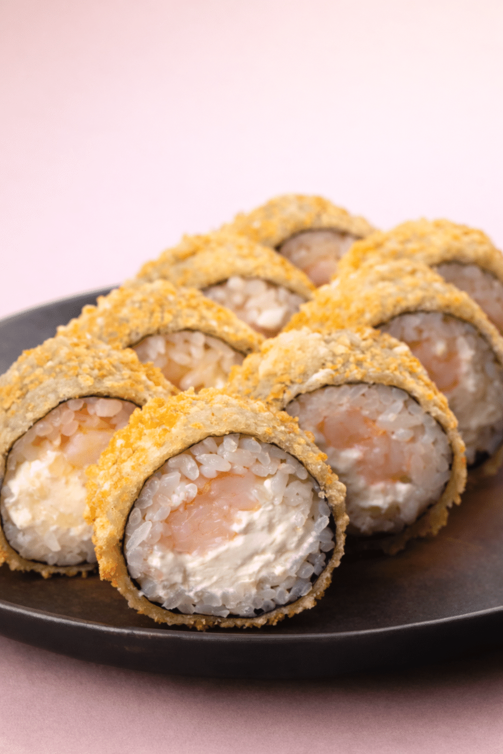 Креветка, творожный сыр, лист нори, рис, темпурный кляр, панировочные сухари 8 шт.