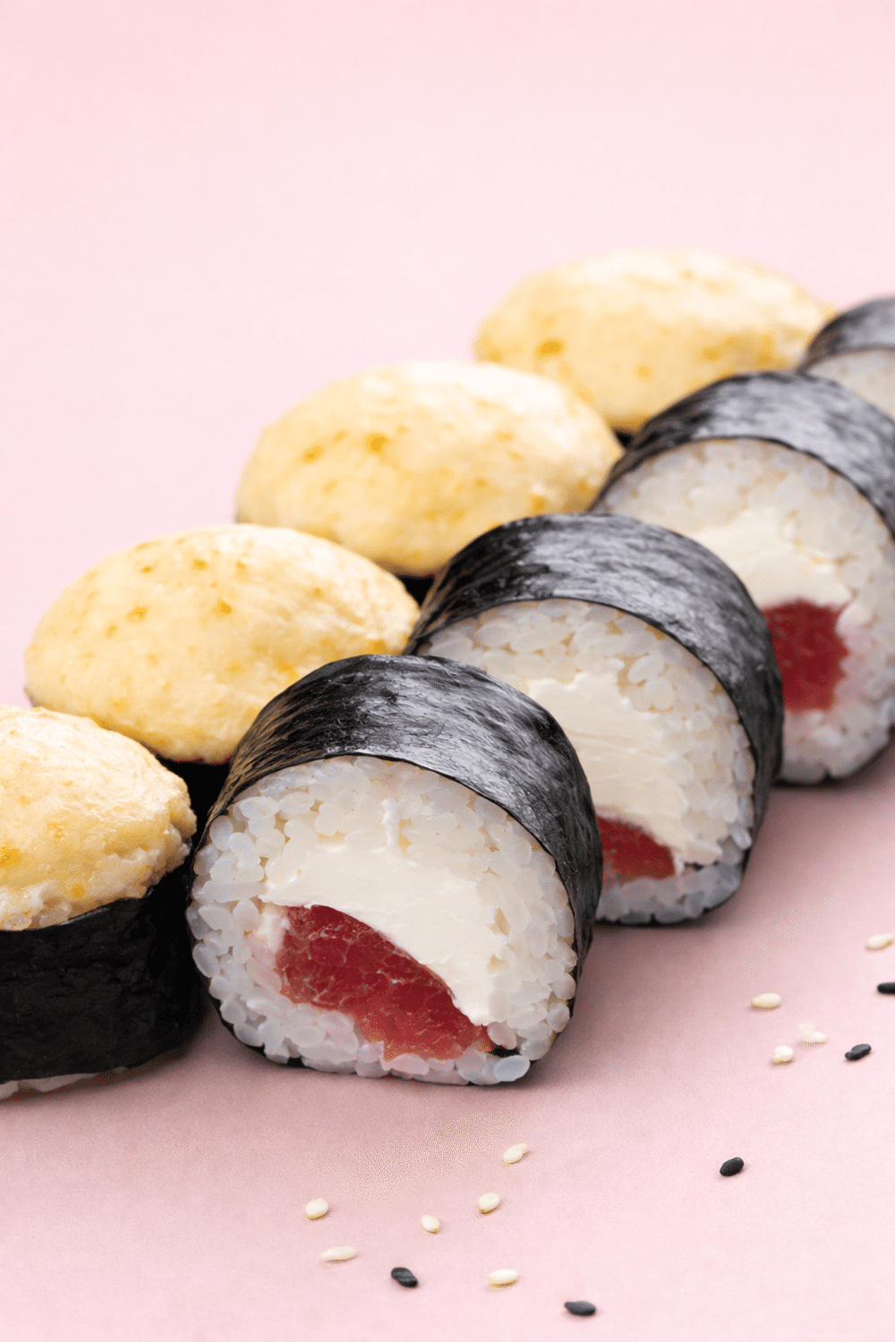 Тунец, творожный сыр, рис, лист нори. Запеченный под сырно-чесночной шапочкой 8 шт.