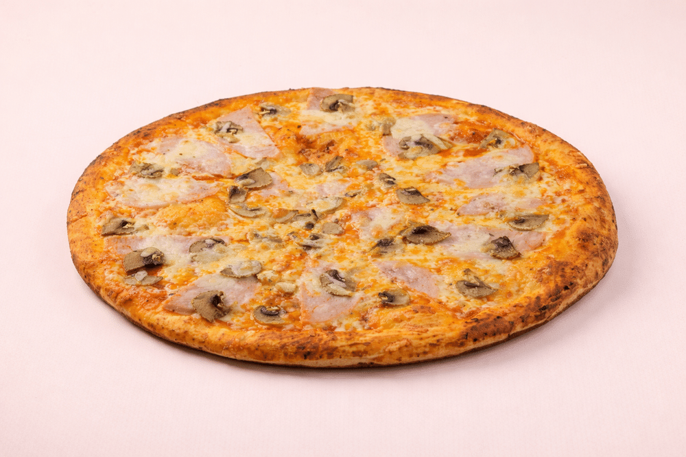 Нежная ветчина, ароматные шампиньоны и моцарелла на томатной основе. Мягкий, сбалансированный вкус с грибным акцентом (670 гр.)