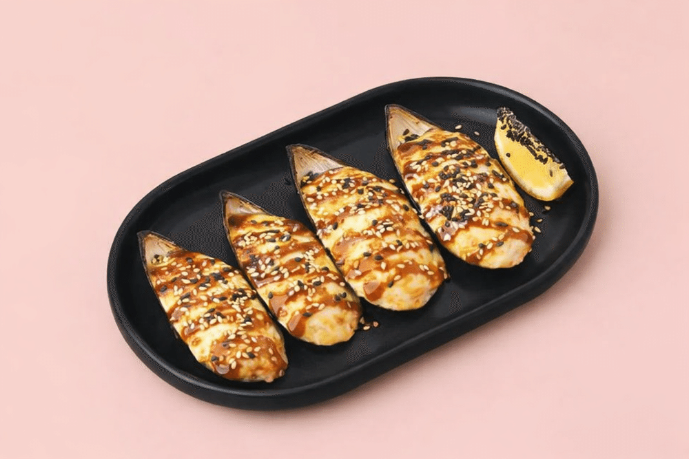 Новозеландские зеленые (или голубые) мидии под фирменным острым соусом 4 шт.